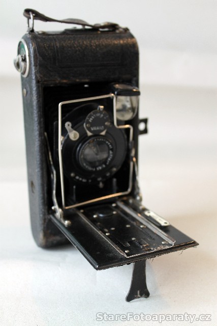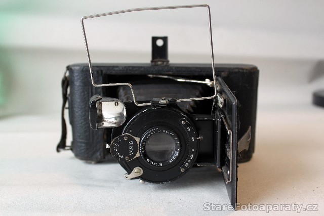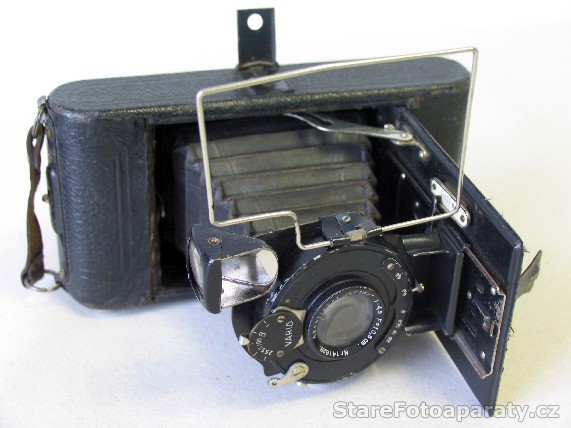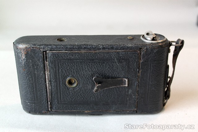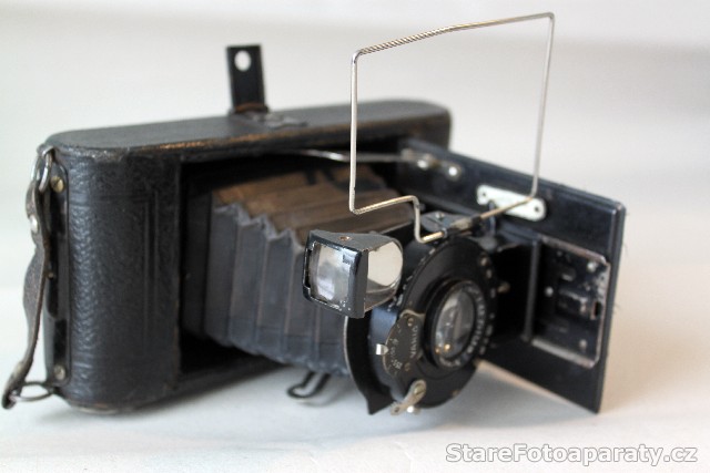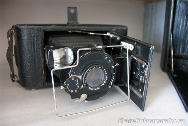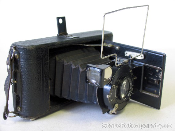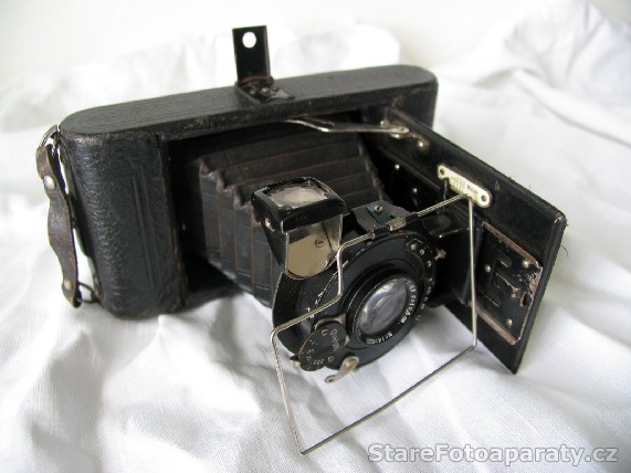 Nemohu určit přesný typ. Tělo dřevěné, potažené kůží. Stupnice pro nastavení vzdálenosti ~ Meter 2, 3, 5, ∞ je ze slonoviny. Odhaduji, že fotoaparát byl vyroben kolem roku 1910. |