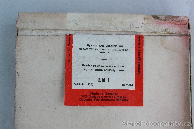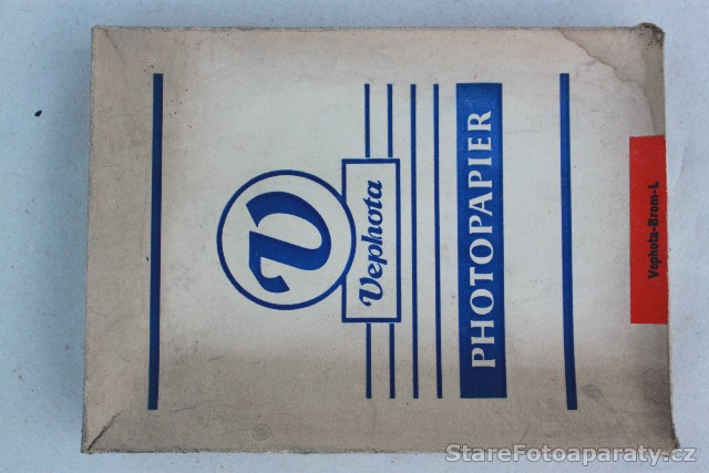 Na fotografii 3 a 4 jsou fotopapíry Vephota s označením Vephota – Brom -LN 1 o rozměru 9 x 14 cm. V balení 25 kusů. Papír – normální, bílý, lesklý, kartón. Vyrobeno : Made in Germany, VEB Photopapierwerk Dresden, DDR .