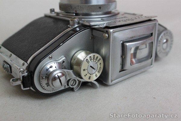 Jedná se o předválečný model s obdélníkovou lupou. Model 004 byl vyráběn v době od 03/1938 od v. č. 529.000 do 03/1940 do v. č. 596.924. Na začátku války byla vyrobena speciální série 400 kusů fotoaparátů s v. č. končícím 597.488. Tento fotoaparát je součástí uvedené série, neboť má v. č. 596.988. |