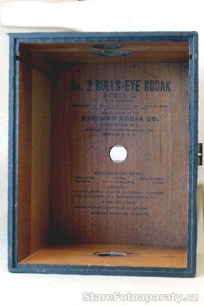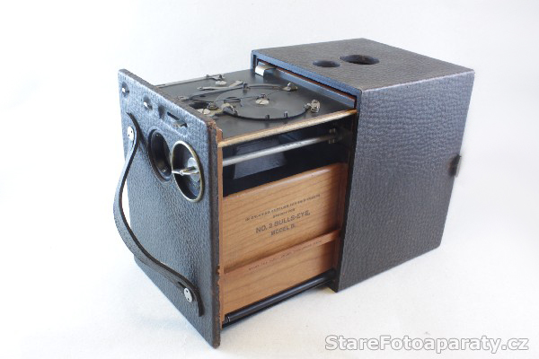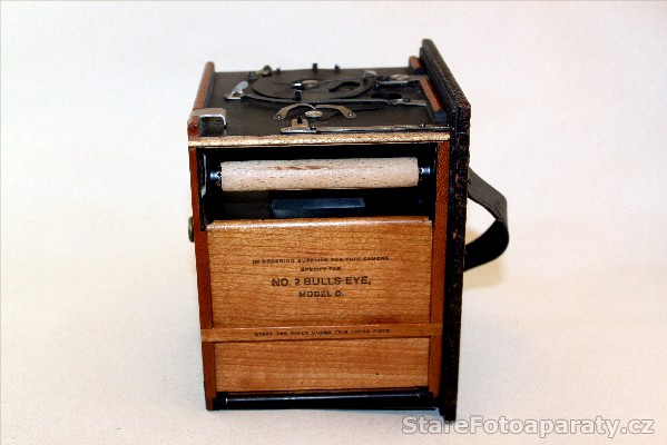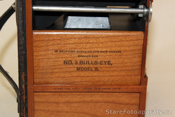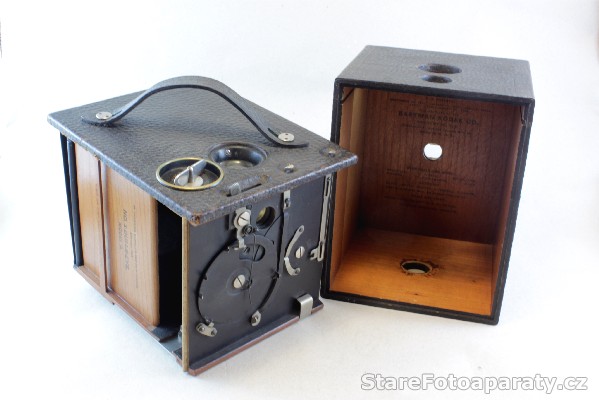 | Poznámky | Přístroj je vyrobený ze dřeva a potažený kůží. Vnitřní část fotoaparátu je vyrobena z krásného dřeva. Jedná se o první přístroj, který používal číslovaný papír u filmu. V zadní části je otvor pro kontrolu čísel. Krásné umělecké dílo. Původní cena 8 Dolarů. |