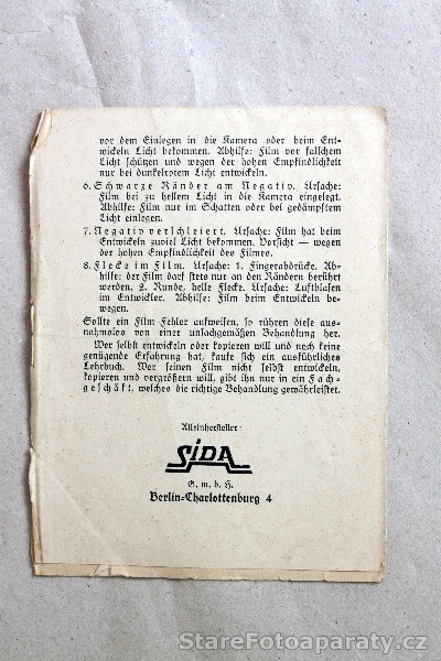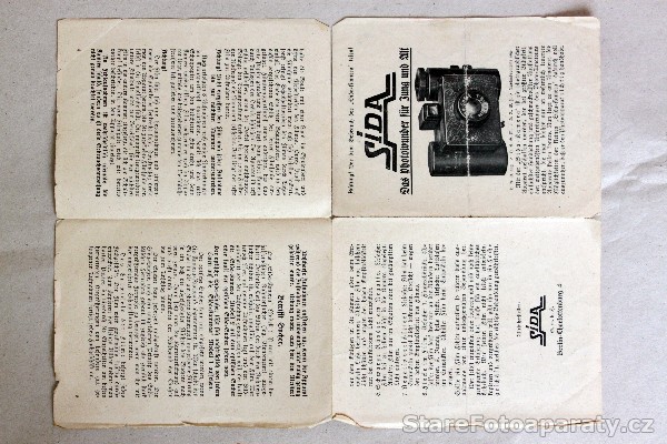 Sida Gesellschaft für Photographische Apparate mbH, Berlín (Německo) . Originál návod v německém jazyce.