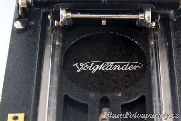 Tělo kovové, potaženo kůží. Příslušenství zakoupené k tomuto fotoaparátu : 9 x deska formát 9×12 cm s nápisem Voigtländer a číselným označením desek. |